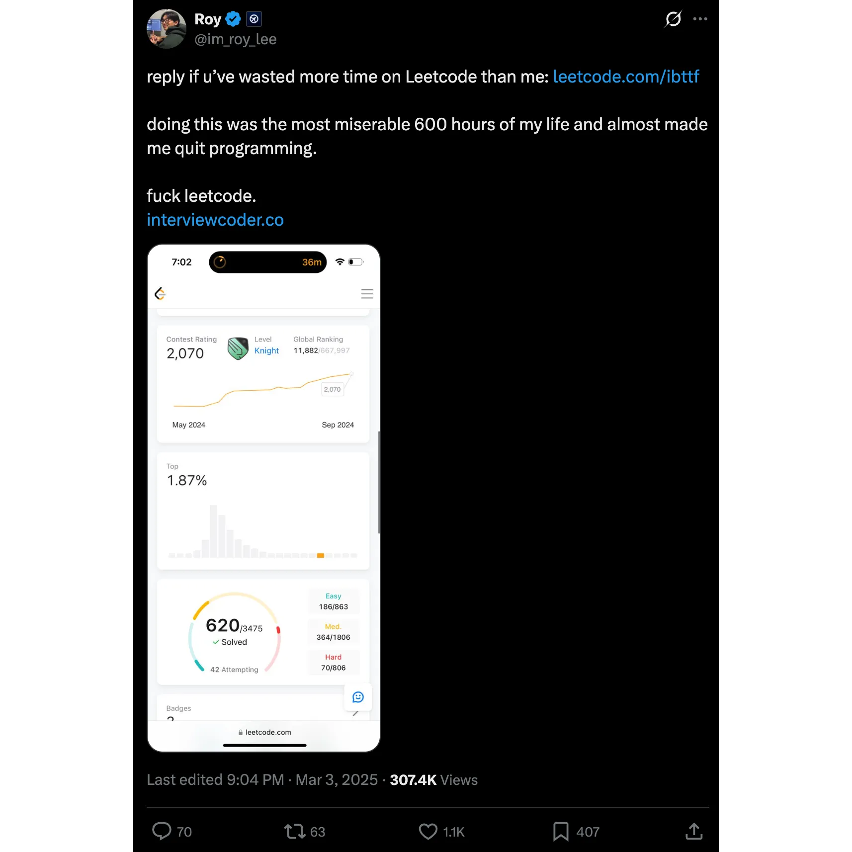 And instead of using this superpower to create things, people are using AI to solve LeetCode problems faster. The irony is painful.